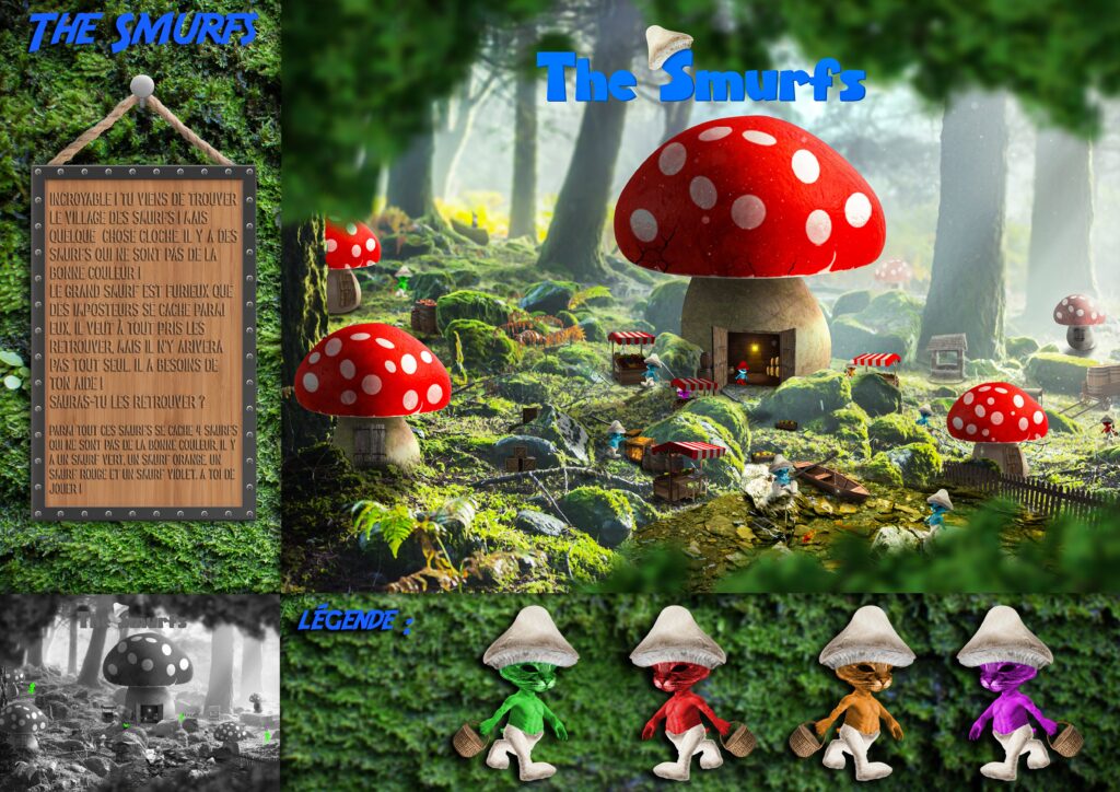 C’est le photomontage qui m’a demandé le plus de temps à créer (environ 1 semaine de travail) de par les consignes données par la professeur. En effet, le but était de créer un cherche & trouve avec une seule photo, et à partir de cette photo, y rajouter plein d’éléments afin J’ai réalisé ce cherche & trouve dans le cadre d’un devoir pour mes études.