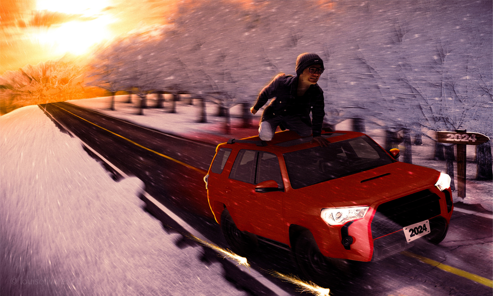 Chaque année, ma famille a pour habitude de réalisé une carte de vœux pour nos proches. Avant c’était mon père qui réalisait ces cartes. Depuis 2 ans j’ai la capacité de les réaliser moi -même. Voici donc la carte de vœux la plus récente, celle de l’année 2024.