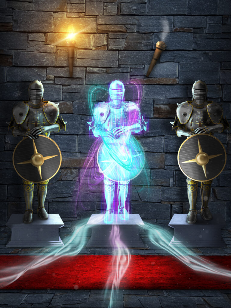 Photomontage d’un chevalier fantôme dans un château abandonné réalisé pour halloween. Pour cette réalisation, j’ai utilisé l’holographisme. C’est une technique qui consiste à garder seulement les tons clairs d’une image et d’y ajouter différents effets ainsi que des couleurs bleu/violets afin de donner à l’image cet aspect holographique. Pour ça je me suis inspiré de Phase Runner